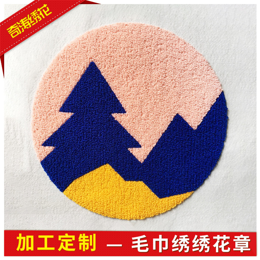 加工定制纺织辅料毛巾绣绣花章布贴 长纤人造毛电脑绣花章贴加工