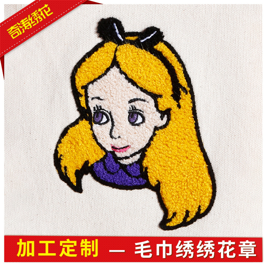 毛巾绣绣花臂章袖标定做 长纤人造毛卡通人物衣服布贴来图定制