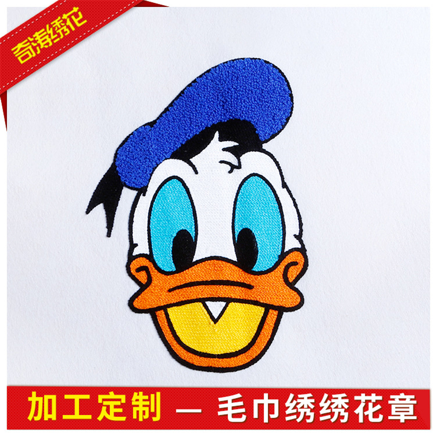 毛巾绣绣花章 服装辅料长纤人造毛布贴 电脑绣花章补丁贴来图定制